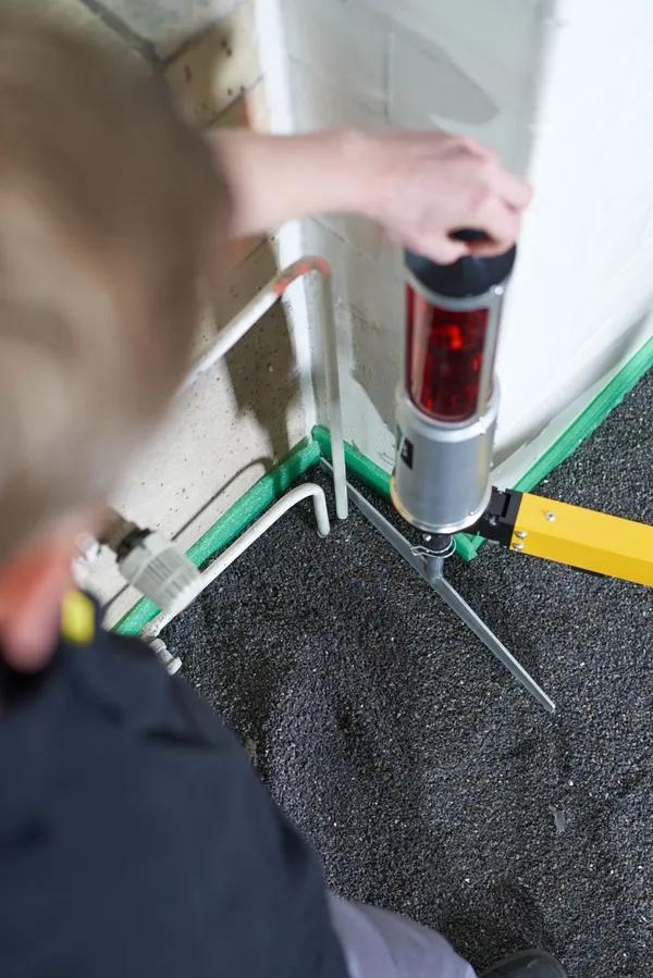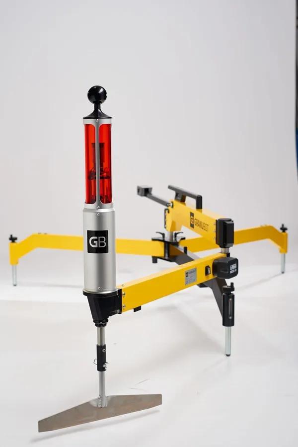 Der Lasergesteuerte Granubot wird über einen handelsüblichen Rotationslaser gesteuert (mindestens 600 U/min). Nach der Höhenjustierung am Laser erkennt die Regeleinheit des GRANUBOTs das Signal und hält das Abziehschwert auf konstanter Höhe – für präzises Nivellieren der Baustelle.